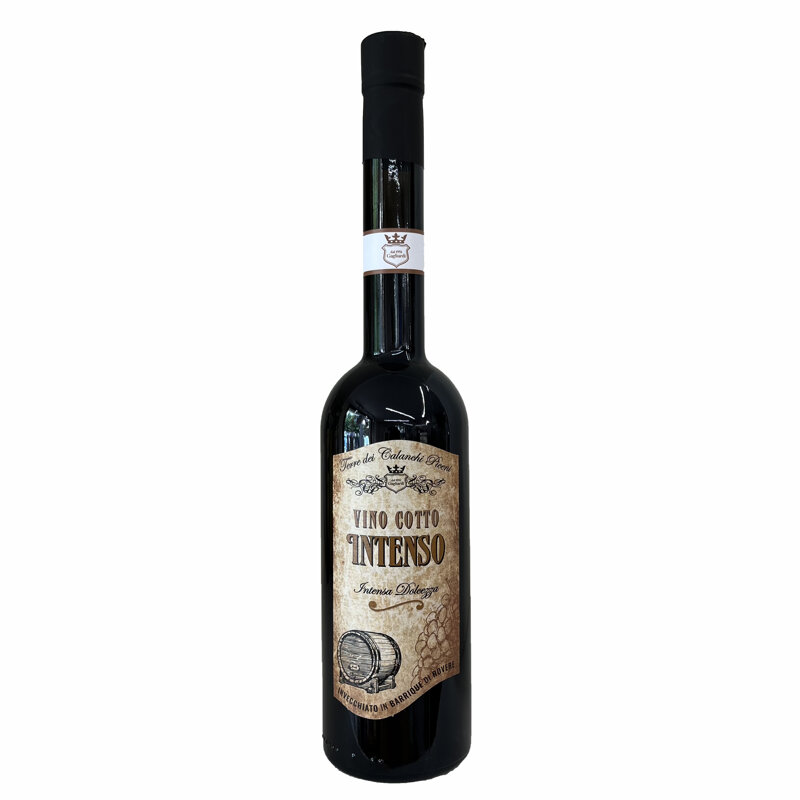 La naturale intensa dolcezza è la caratteristica principale del Vino Cotto Intenso che spicca per armoniosità e per il suo essere dal gusto amabile. Ciò che contraddistingue il nostro Vino Cotto Intenso è l’utilizzo dell’uva melata, un raro uvaggio tipico delle Terre dei Calanchi Piceni, utilizzato da generazioni come specifico per la produzione del vino cotto. Questa particolare uva aggiunge all’aroma del vino un profumo ed un gusto sublime. I grappoli vengono raccolti scrupolosamente a mano e subito lavorati, poi il mosto viene cotto nel tradizionale caldaio di rame fino ad arrivare ad una gradazione zuccherina molto alta in modo che parte degli zuccheri rimangano nel vino stesso anche dopo la fermentazione.